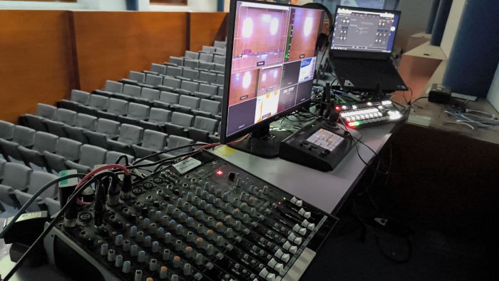 Integramos sistemas de streaming, cámaras PTZ, microfonía y conectividad con las principales plataformas online.
